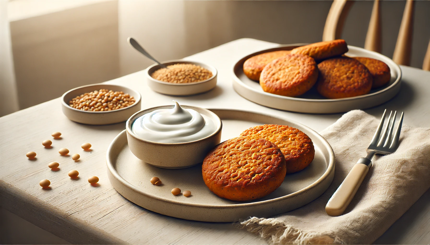 Protein-rich patties with a cool, creamy dip.